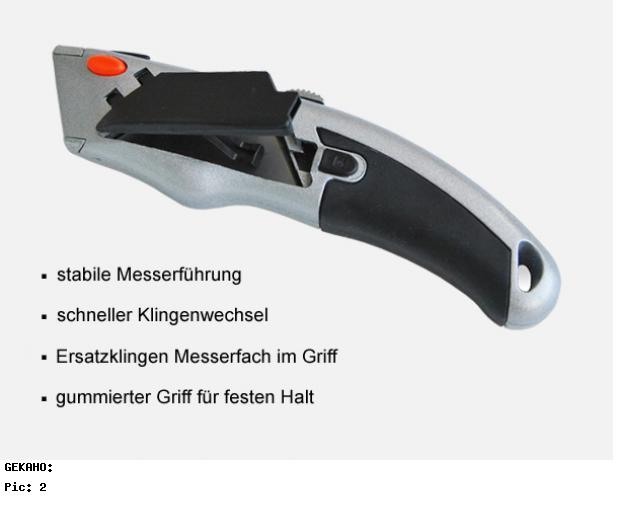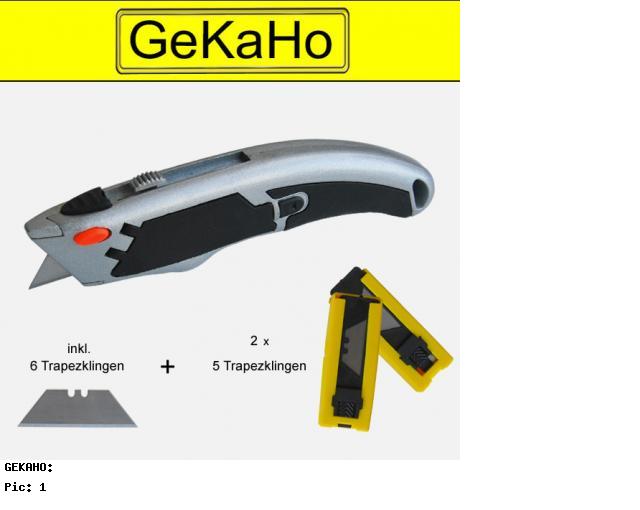 - Inklusive 6 Stück Ersatzklingen "Trapez" im Griff (Schnellwechselsystem)