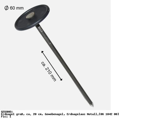Maße: Nagel-Durchmesser ca.6 mm, Kopfdurchmesser ca.60 mm, Länge ca. 210 mm.