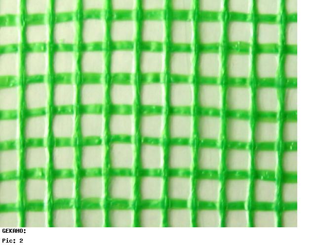 Die robuste UV- beständige Folie ist transparent und mit einem grünen Gitter zusätzlich verstärkt.