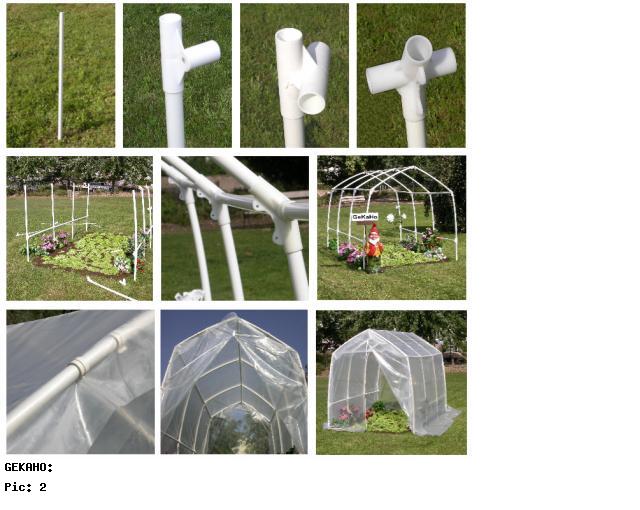 Sehr leichte Montage ohne Werkzeug möglich! Einfach die Flexrohre mit den Kupplungen durch Zusammenstecken verbinden, dann die UV beständige "Profi" Gewächshausfolie auflegen und mit den beiliegenden Spezialclipsen befestigen, fertig.