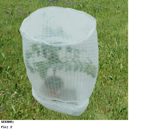 Die Haube wird einfach über die Pflanze gestülpt und unten mit einer Schnur oder ähnlichem zusammengebunden. Schnell, einfach und sicher.