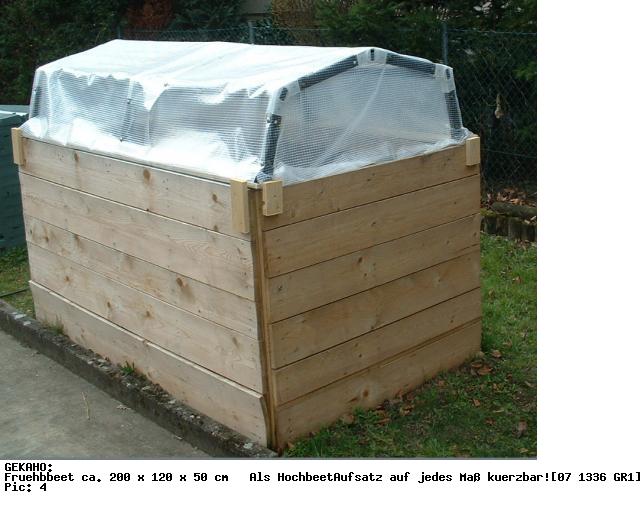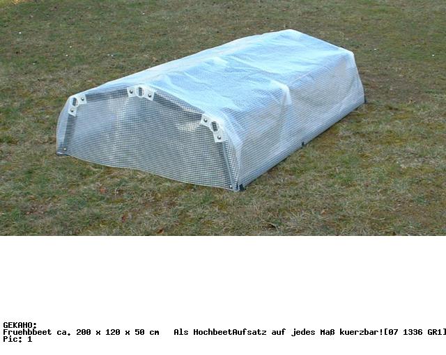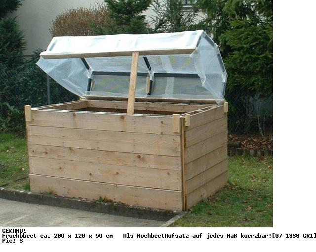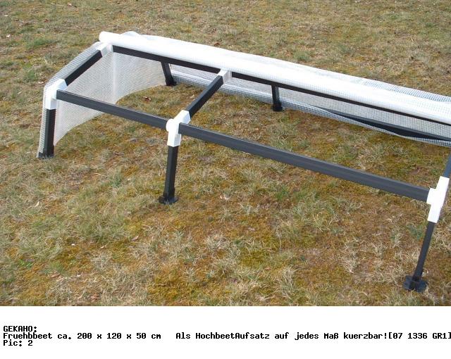 Es kann auf jedes beliebige kleinere Maß gekürzt bzw. angepasst werden, so kann es für viele im Handel erhältlichen Hochbeeten als Abdeckung eingesetzt werden. Dank der Standfüße ist das Frühbeet aber auch auf der Terrasse oder dem Balkon einsetzbar. Wenn Sie ein größeres Maß benötigen fragen Sie uns nach einem "Erweiterungssatz" für Ihre Größe!