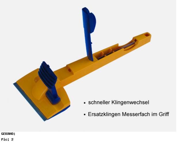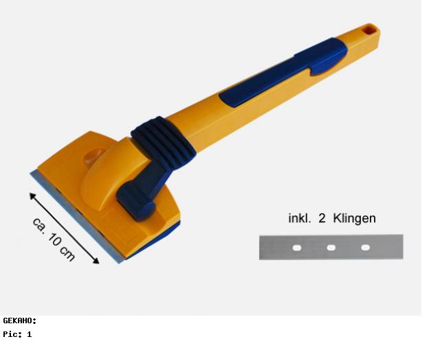 Sie erhalten 1 goßen Schaber mit 2 rasiermesserscharfen "Schabeklingen" sicher - gegen Verletzungen - im Griff verstaut.
