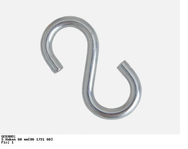 S-Haken Größe ca.: Länge 60 mm, Breite 30 mm Stärke 6 mm