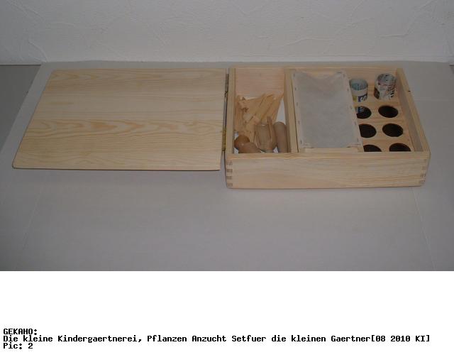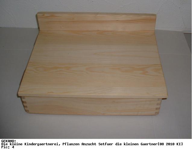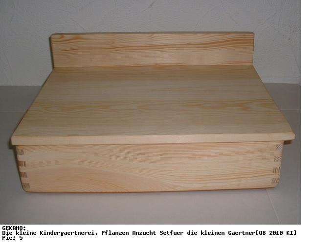 1 schöne, Holzkiste mit Arbeitstisch und Unterteilung z. B. als Aufbewahrungsfach für Samentüten und Gartenwerkzeuge. Die Kiste ist aus massivem Nadelholz gefertigt, stabil verzinkt und wasserfest verleimt. Der Deckel dient sowohl im geschlossenen sowie im geöffneten Zustand als praktischer und stabiler Arbeitstisch und Ablagemöglichkeit. Der Kistenboden besteht aus einer weiß beschichteten MDF Hartfaserplatte - ist sehr glatt - und somit gut zu pflegen und zu reinigen.