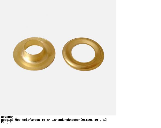Die Ösen sind in der Farbe Gold, aus Hartmessing gefertigt und bestehen jeweils aus 2 Teilen (Ösenring + Gegenscheibe).Innendurchmesser ca. 10 mm, Außendurchmesser ca. 20 mm