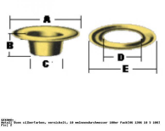 Die Ösen sind in der Farbe Silber, aus vernickeltem Hartmessing gefertigt und bestehen jeweils aus 2 Teilen (Ösenring + Gegenscheibe).Innendurchmesser ca. 10 mm, Außendurchmesser ca. 20 mm