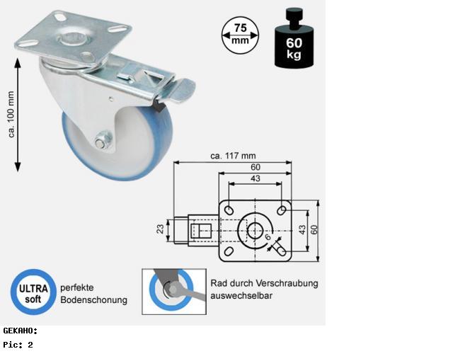 - Soft-Lenkrolle zum Anschrauben (Schrauben sind nicht im Lieferumfang)
