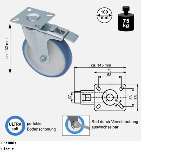 - Soft-Lenkrolle zum Anschrauben (Schrauben sind nicht im Lieferumfang)