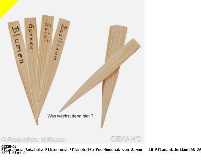 1 Pflanzholz + 10 Pflanzen-Etiketten zur Kennzeichnung von Einzelpflanzen.