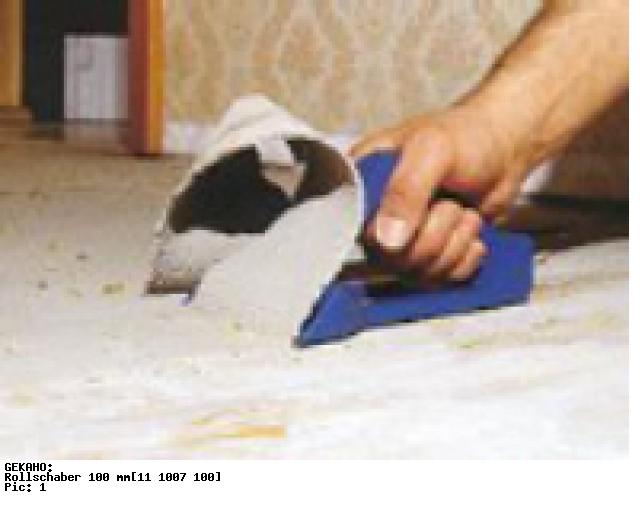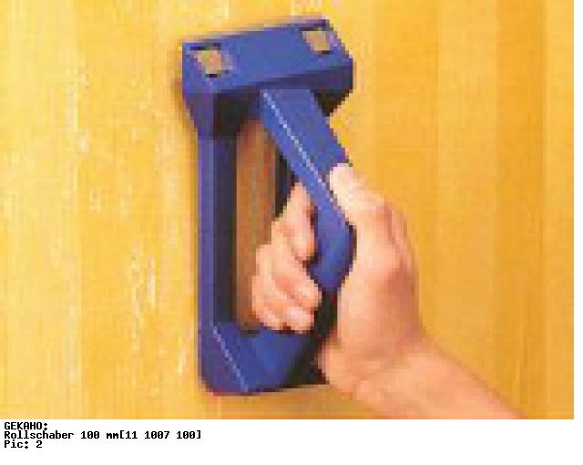 Mit 2 Klingen. Aufrauhen der Tapete mit der Zackenklinge. Entfernen von Tapeten- und Teppichbodenresten mit der Schabeklinge. 1 Rollschaber, 100 mm Arbeitsbreite mit Schabeklinge + Zackenklinge. Zum leichten Entfernen von Tapeten- und Teppichbodenresten.