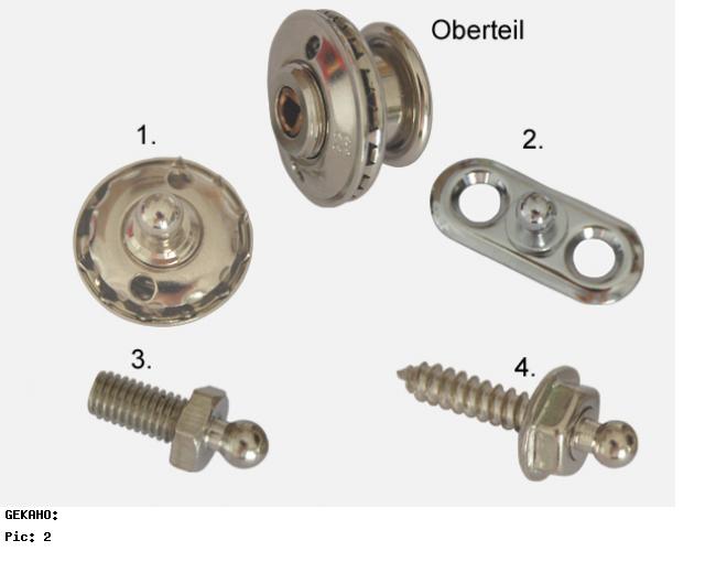 Die Druckknöpfe sind in der Farbe Silber, aus vernickeltem Hartmessing gefertigt und bestehen jeweils aus 2 Teilen, einem Oberteil mit Außendurchmesser ca. 20 mm und einem Unterteil nach Wahl.