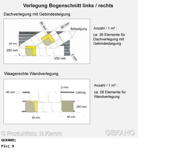 - Für Dachverlegung mit Gebindesteigung ca. 36 Stück/m²