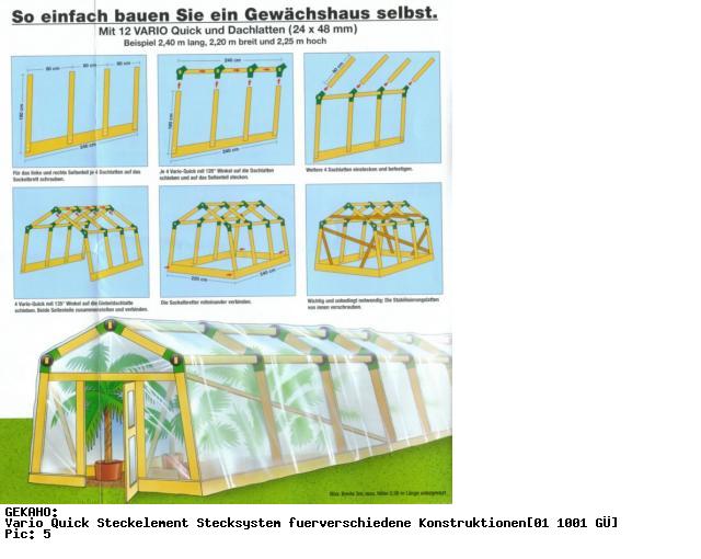 Steckelemente von GeKaHo sind geniale Verbindungen für vielseitige Konstruktionen oder Bauwerke aus Hölzern im Eigenbau wie z.B.:Gewächshäuser, Frühbeete, Salatbeete, Tomatenhäuser, Carporte - Notgaragen, Zelte, Partyzelte, Messe-, Markt-, und Promotionstände, Regale, usw. Sie können damit ganz schnell und einfach ein Tomatenhaus, ein Gewächshaus oder auch Frühbeet bauen so wie Sie es wollen und brauchen, passgenau an Ihren Wunschort!