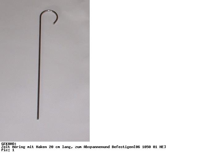 Maße: Durchmesser ca. 3 mm, Hakendurchmesser oben ca. 3 cm, Gesamtlänge ca. 20 cm.